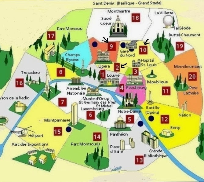 From 1852 on, Haussmann rather ruthlessly demolished irregularly shaped medieval roads, replacing them with wide, tree-lined boulevards and elegant buildings. The long strip of land north of the Seine, marked at one end by the Arch de Triumphe and by the Louvre at the other, was linked by a widened Champs Elysees, Place de la Concorde and Tuileries Gardens. In 1862, work started on one of the largest, most decorative opera-house of all. It seated 2000, had a huge stage and a VERY decorated interior. Sacre Coeur Basilica was built by national subscription in 1876. The massive white structure, with an enormous flight of steps up the side of the hill, looks vaguely Byzantine. The paintings are mosaics of the interior are also very elaborate. On the edge of Haussmann’s new city, people were encouraged to love and use the huge parks - Bois de Vincennes in the east and Bois de Boulogne in the west. Smaller green spaces throughout Paris meant buildings had to come down.