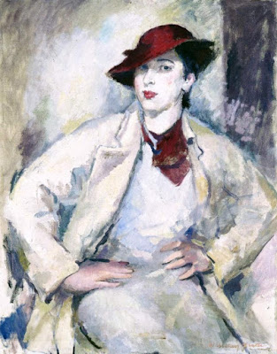 I am bringing the two Australian paintings together after all these years because Renata Singer (Gallery Magazine, NGV, June 2015) found them engaged in an unexpected dialogue. The composition of Bryans’ and Frater’s works were not dissimilar, with their sitters’ red hats, flushed lips and direct gazes. Perhaps this was not surprising - the artists both lived in Melbourne, were painting together before WW2 broke out in 1939, and shared many arty and literary friends.