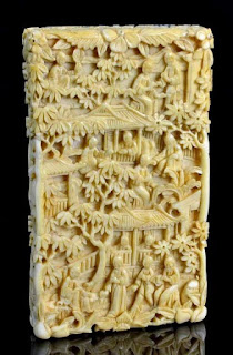 Etiquette dictated that ladies should always carry their cards in a card case, although it was acceptable for a gentleman to carry calling cards in his jacket pocket. Chinese ivory, made for the export market, was usually carved in minutely detailed relief with trees, people, birds, flowers, animals and architecture. So how did the European women maintain the perfect condition of the finely carved ivory in real life conditions? Not surprisingly, some examples of Chinese carved-ivory cases can now fetch several thousand pounds at auction due to rarity, craftsmanship and a new market of avid Chinese collectors.